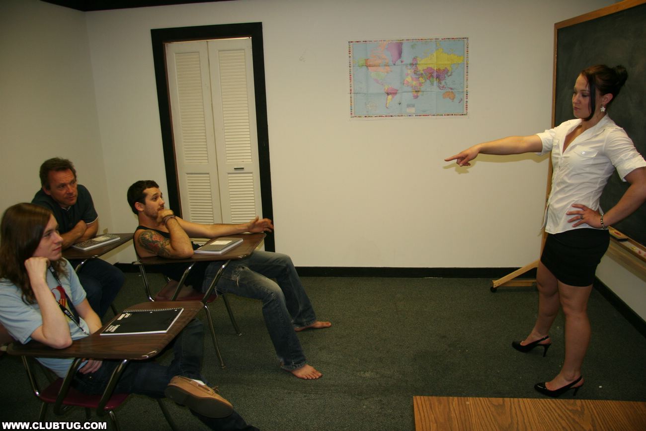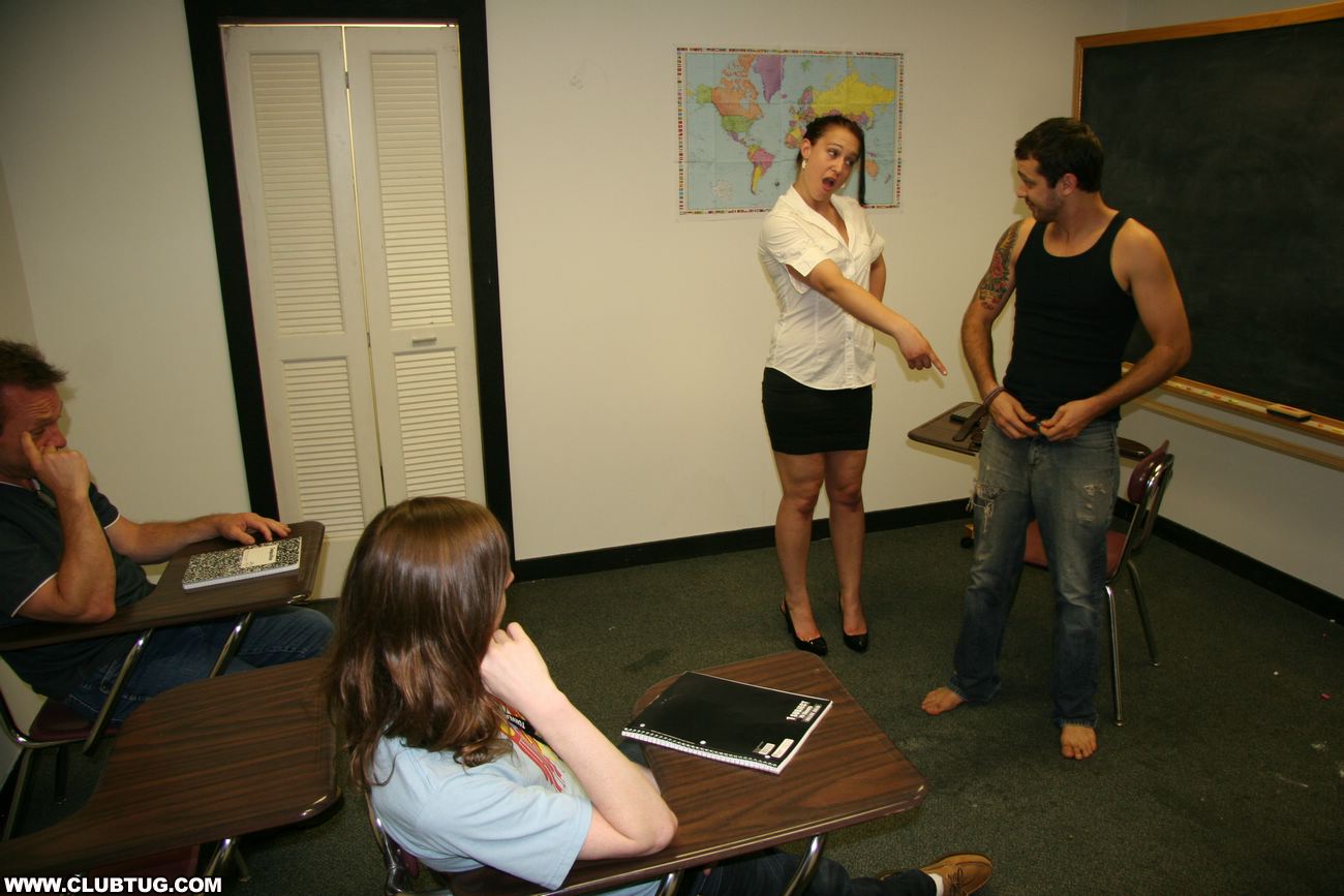 When Bobby starts acting up in class, his teacher Mrs. Cheyenne Jewel decides to punish him by embarrassing him in front of everyone. She makes him strip down naked and makes fun of his dick. When he gets erect, Mrs. Jewels starts beating it until he spurts out a big load of jizz.
