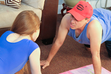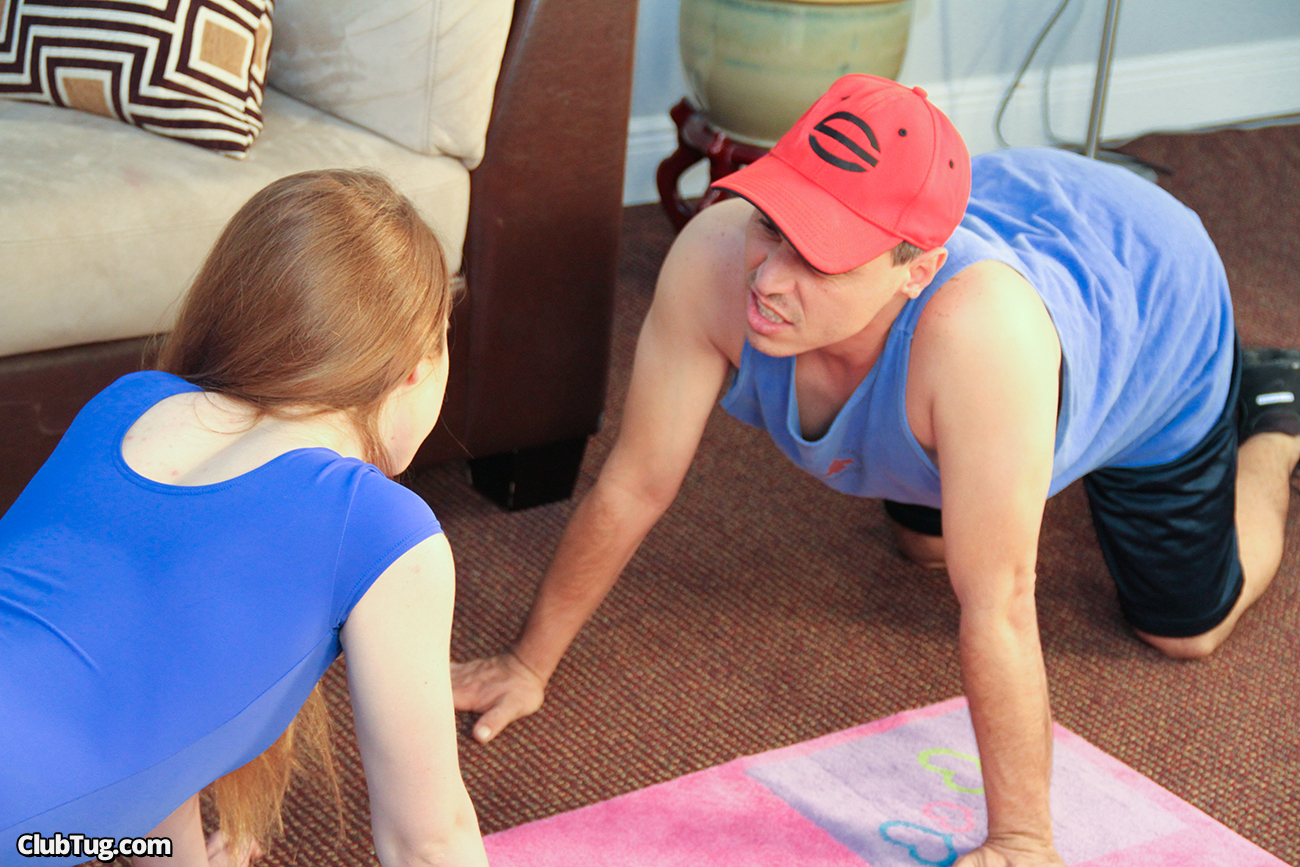 Knowing that cute Sofie is a fit girl, Mr Johnson asks her to help him workout. The sexy babe calls him at her place to show him some exercises, but the slutty teen has a new style workout in mind, which includes stroking Mr Johnson's cock. Sofie gets naked and jacks off his dick on the floor of her living room, until he releases his cumload on her hand.